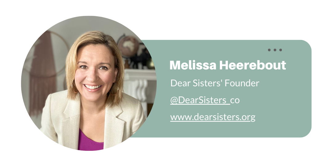 Melissa spends her days, like many women, wearing many different hats! She pastors at a local church and is passionate about creativity, reaching her community, marriage, and motherhood. Melissa is all about Jesus + Community, from creating the Dear Sisters community to publishing an online and print magazine to coaching women to pursue healthy mindsets to reach their goals. She and her husband Tim, their three kids, and their lovable lab Watson live outside Vancouver, BC.